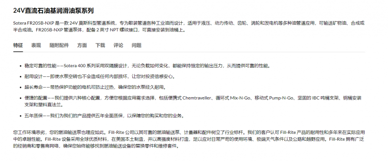 SOTERA 24V直流油品管道泵FR205B-NXP系列